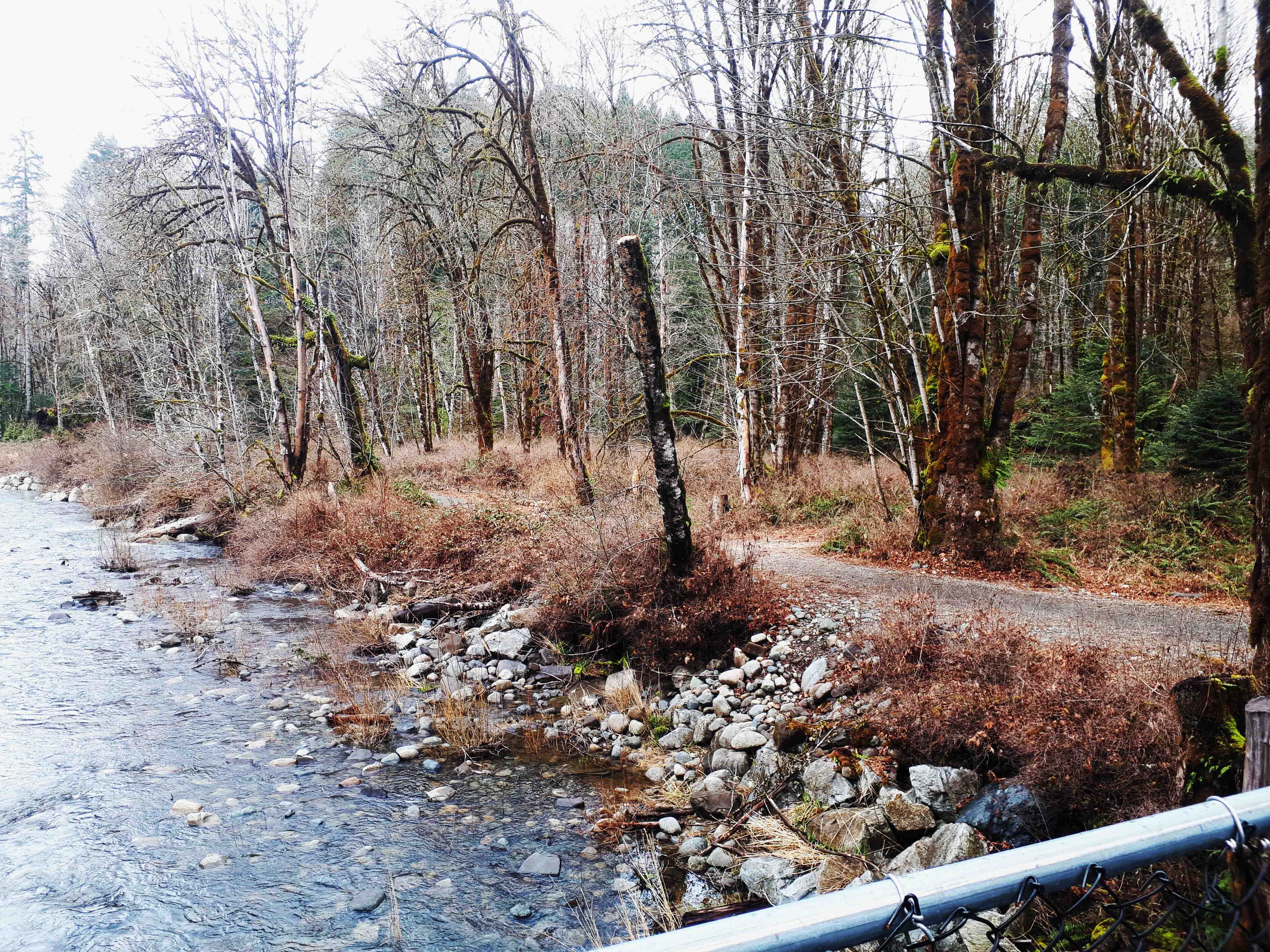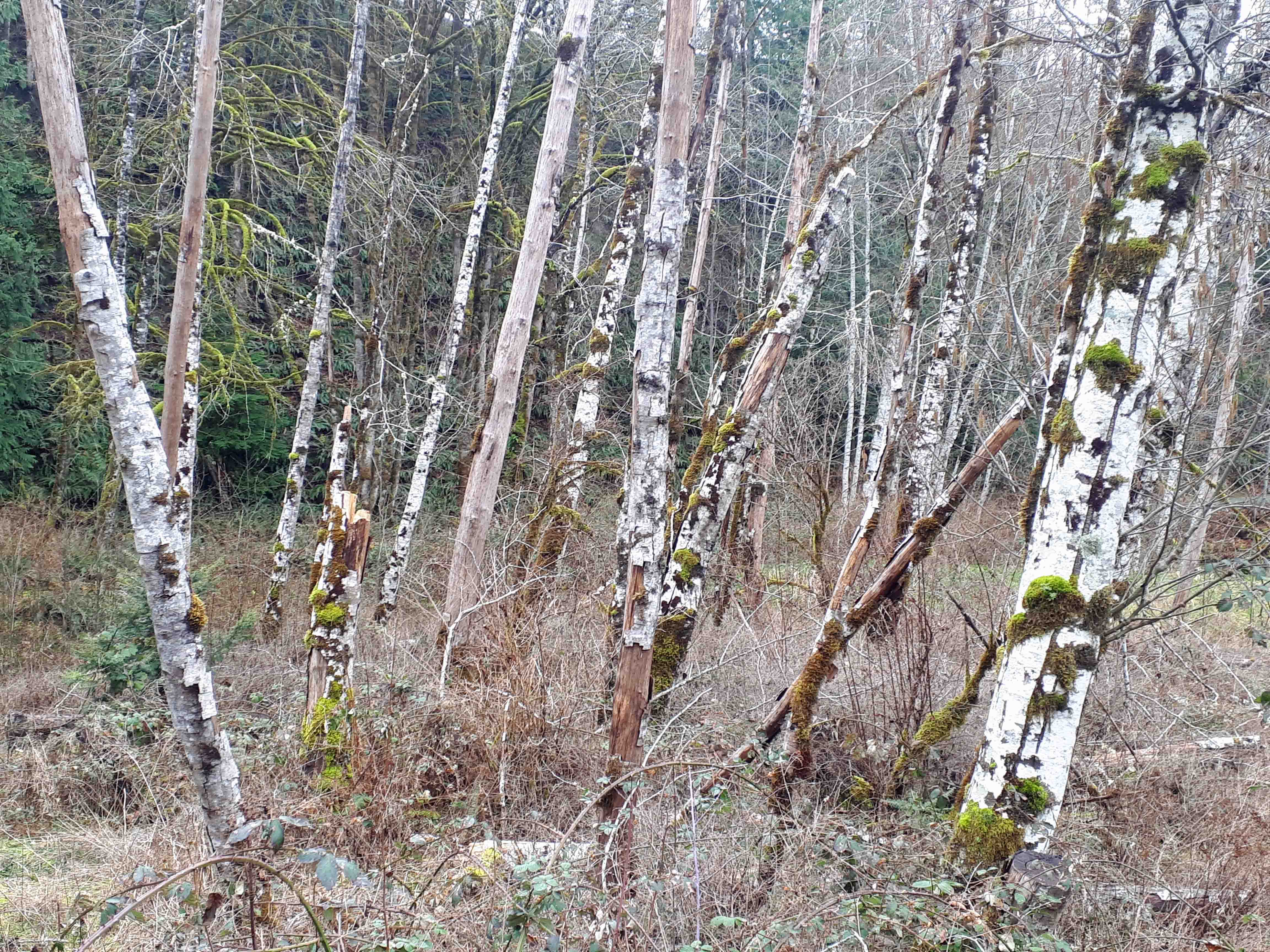 These trees would be long lived, provide shade to Roger Creek, the droppings from the trees, branches leaves bugs and larvae would provide habitat for the fish in the creek. Eventually when they die, they can provide provide coarse woody debris (logs, branches, and root wads) for fish to hide under. They would also absorb carbon in a location that would be secure for many generations.
