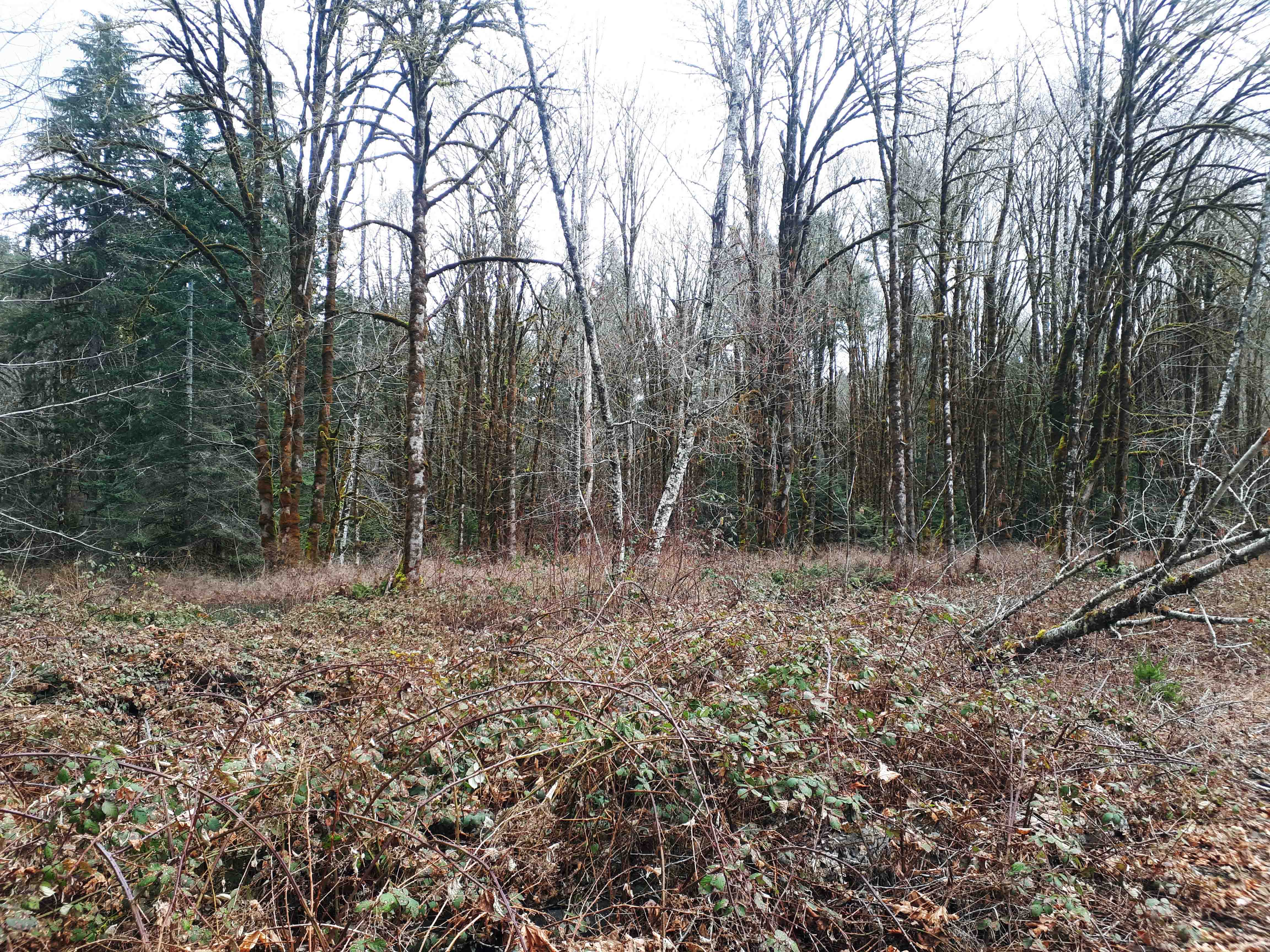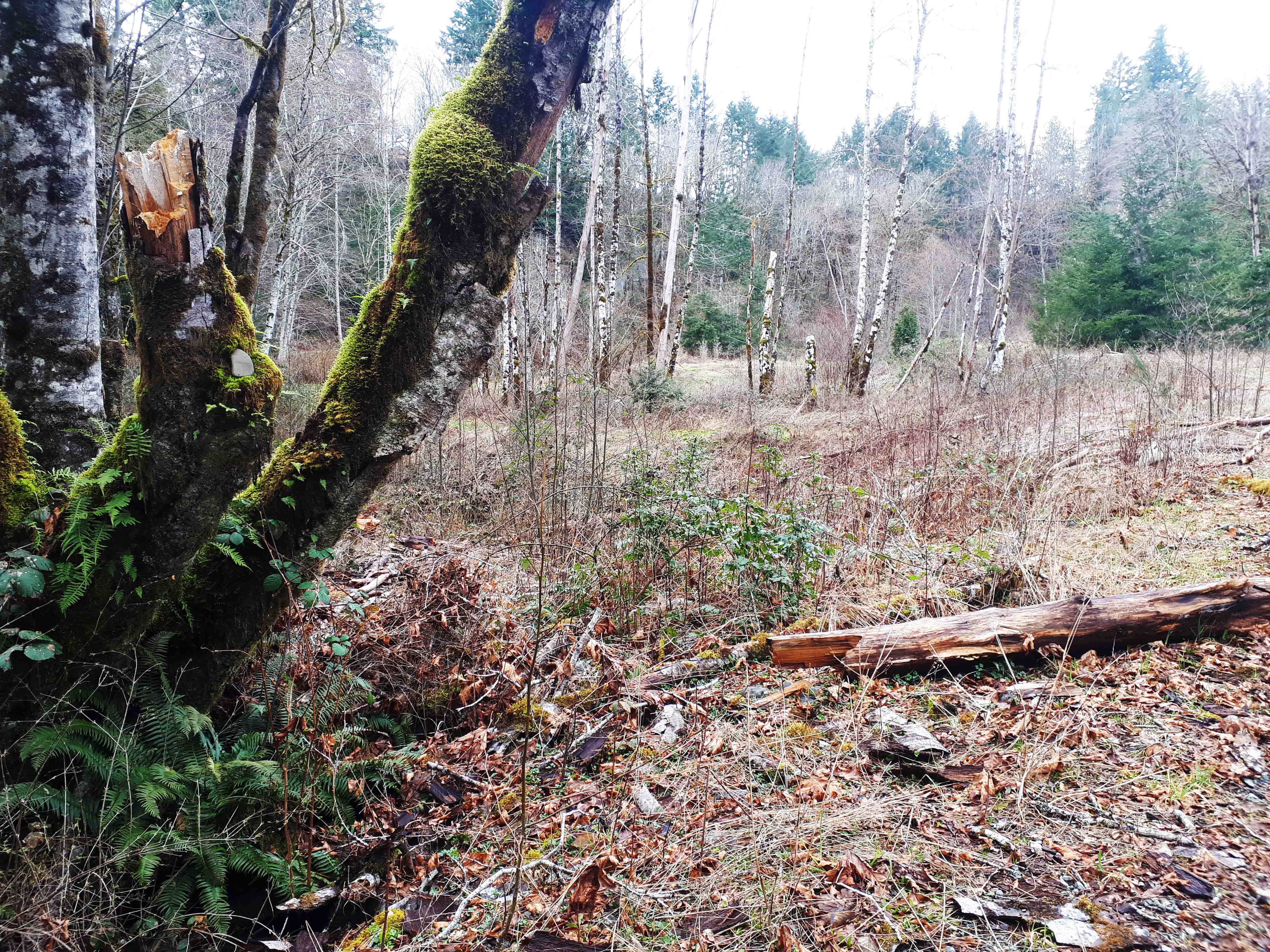 The north edge of the property is the City Limit. Beyond that is the Hupacasath’s Woodlot Licence. It provides older forest and a wilder habitat connection to both ponds, particularly the upper pond, because the pond extends about 50 meters into the Woodlot.
