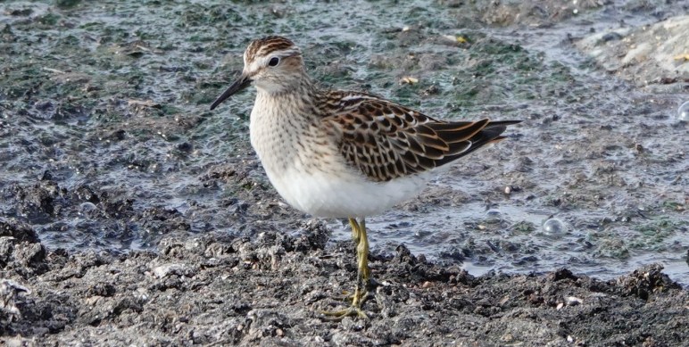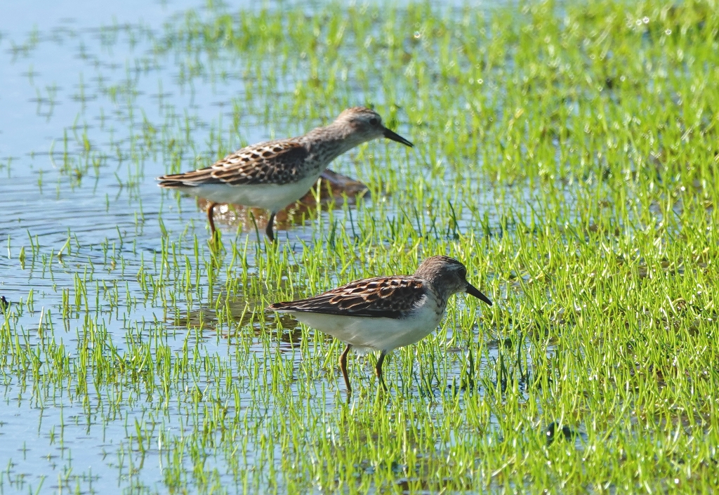Last year 4 shorebird species were seen at the estuary in August. In contrast, this year 11 species have been recorded, including Baird’s Sandpiper, Pectoral Sandpiper, both Greater and Lesser Yellowlegs, and a Red-necked Phalarope.
