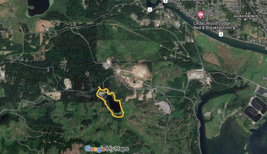 Devil’s Den lake is an obscure little lake you can easily hike around in an hour or so unless you really dawdle. It’s nestled at the foot of a range of big hills that form the south boundary of Sproat Lake. It is a 15 minute drive from Port Alberni. It’s perfect for a light afternoon excursion with the family.