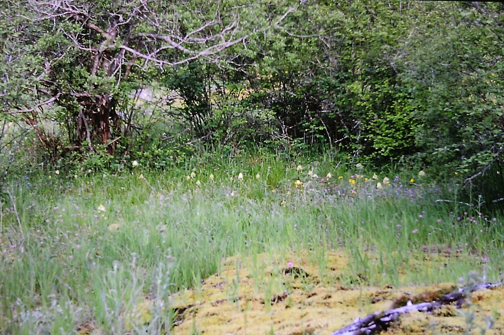 I have known about this lake for many years. I first used to take a very rough trail to the closest part of the lake, carved out by fishermen. There was a side trail that crossed (forded) the creek that drained the lake below the beaver dam. that held the lake at its current level. Then it went up to a rocky bluff that is covered in wildflowers in early May and provided a beautiful view of the lake and the mountainside beyond.